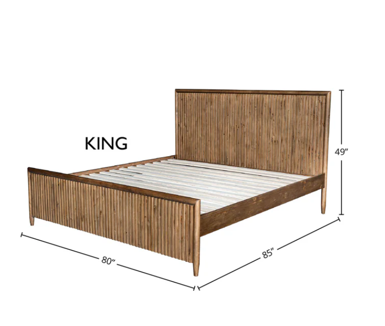 Discover the perfect blend of rustic charm and modern elegance with this good looking King Bed. Crafted from sustainably sourced FSC recycled pine, this bed boasts a beautiful slatted texture that runs from the headboard to the footboard.