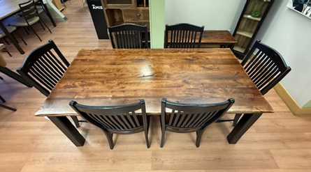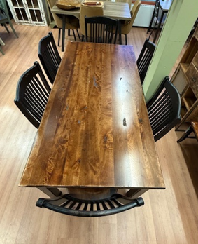 Canadel 7 Piece Birch Dinette Set Table 38 x 78 with 6 Chairs Distressed Spice Washed and Black