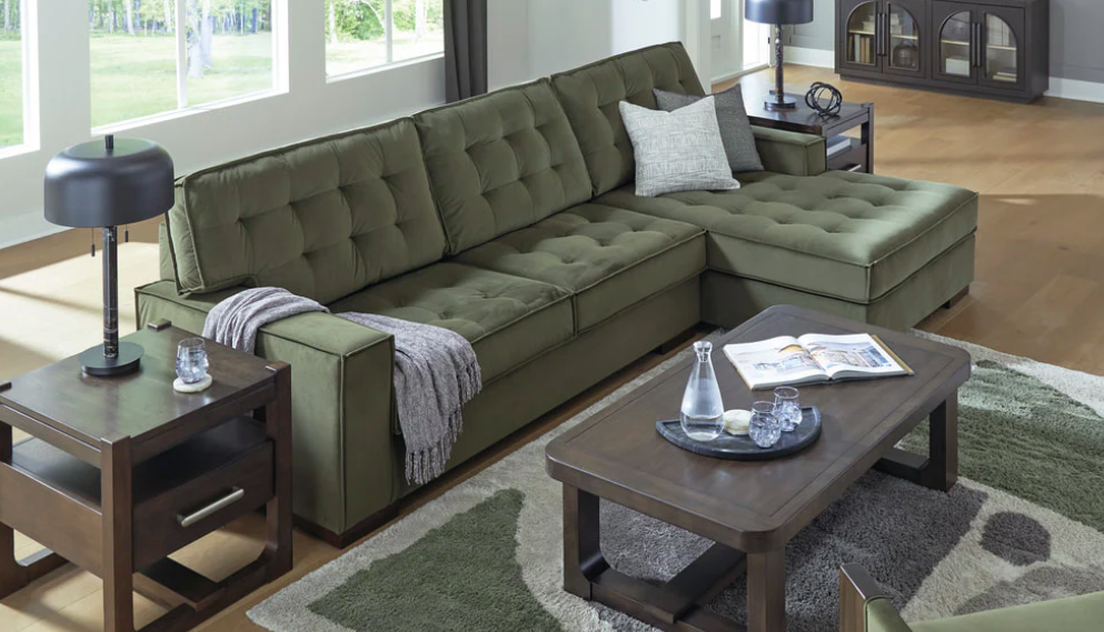 Caspian-Town Olive 2 Piece Sectional$2,699.00 RAF Corner Chaise 46″ W x 70″ D x 38″ H LAF Sofa 82″ W x 41″ D x 38″ H Caspian-Town Olive 2 Piece Sectional quantity Request This Out of Stock Item SKU: 617-02-17/66 Categories: Ashley Furniture, Sectionals Related products Bolanburg Sofa Table $929.00 Request This Out of Stock Item Nashburg Double Metal Bed $599.00 Request This Out of Stock Item Theo Faux Marble 3pc Coffee Table Set $679.00 Request This In Stock Item Lindyn LAF Corner Chair & RAF Corner Chaise $3,079.00 Request This Out of Stock Item