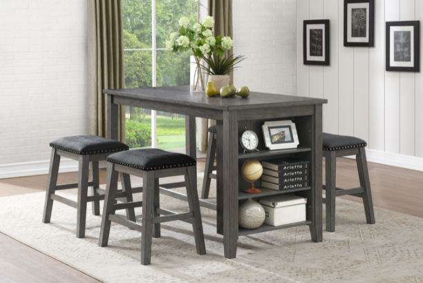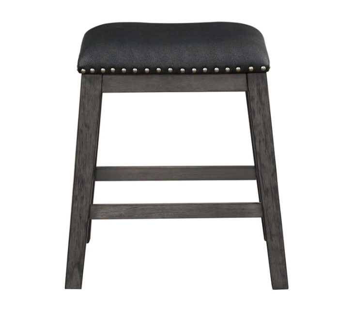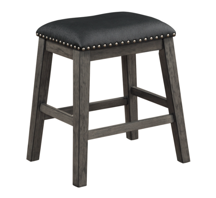 The design of the Timbre Collection will be the perfect seating addition to your casual dining space. The counter height barstool’s legs feature wire-brushed acacia veneer that is highlighted by a grey finish. Topping the stool is the textured black faux leather seat with nailhead accent.