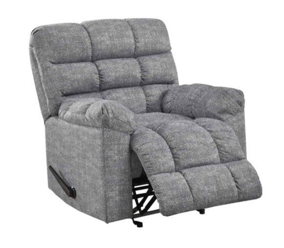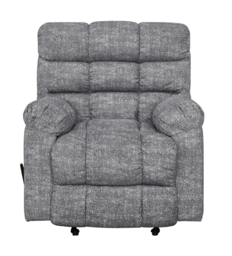 Snuggling into the cushioned embrace of the Wylan Collection feels exactly like getting a warm hug. Overstuffed back and seat cushions are accompanied by pillow-top arms for the ultimate expression of comfort, while biscuit-tufting and plush textured chenille-like upholstery in a soft, neutral grey are the perfect touches to make your living room feel warm and inviting. For the full relaxation experience, don’t forget to pull on the lever to fully recline your seat and kick up your feet, and if you’re in the mood for a little snooze, the glider mechanism offers the perfect gentle motion to lull you to sleep. Almost too cozy to be allowed, the Wylan adeptly brings decadence straight to your living room.