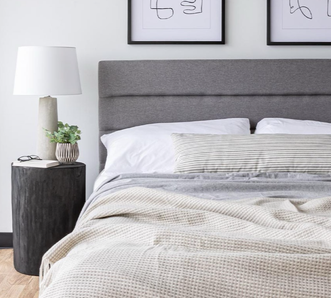 Featuring a smooth gas-lift mechanism, plenty of room, and a line sewn tufted headboard in a durable 100% polyester, neutral Greige coloured fabric, Justin is low profile, sleek, and perfect for smaller living.