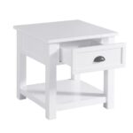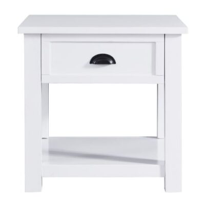 Everything else can be safely stowed on the open lower display shelf. With its crisp white finish, contrasting dark-finished metal cup hardware, and subtle framing, the Champlain’s pleasing transitional design is a neutral compromise that works in every room.