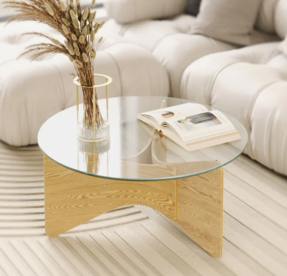 Round, Clear Top Design: This modern and minimalist round coffee table has a weight capacity of 200lbs. (91kg) and works with a variety of design styles