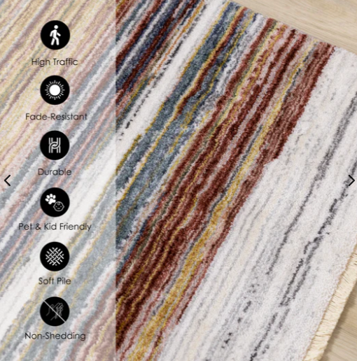This rug is made from polyester, a material that is stain resistant, and adds dimension and durability to its designs.
