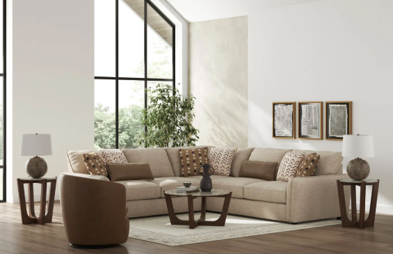 Seyler 3pc Sectional and Oversized Ottoman in Sand