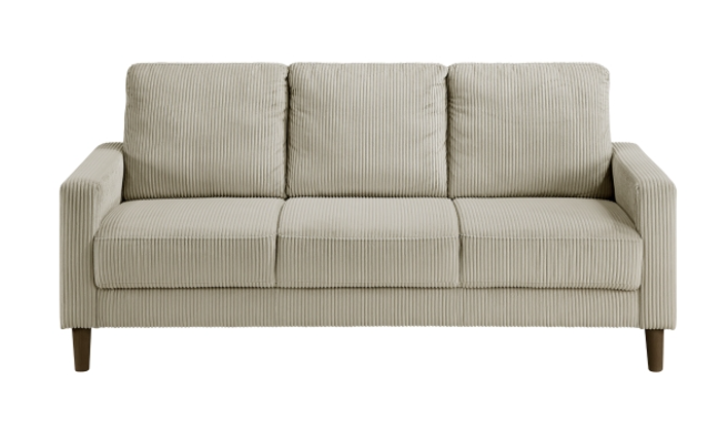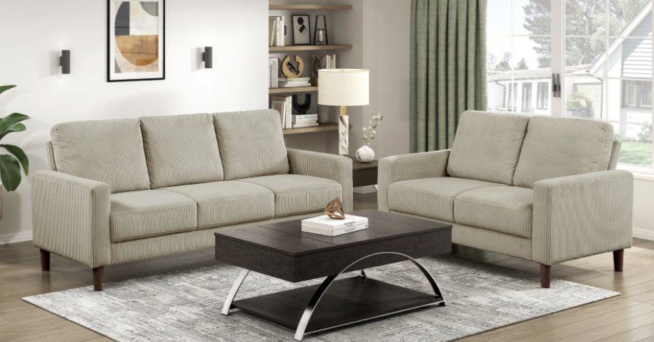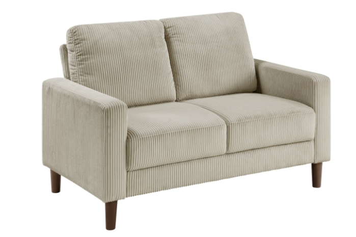 This collection offers a range of cozy, sophisticated seating options, including a side chair, loveseat, and sofa, all featuring soft, textured taupe corduroy upholstery. The clean, modern silhouette is complemented by sturdy brown faux wood finish legs, adding natural elegance to each piece. The generously cushioned seats and backs ensure exceptional comfort, perfect for relaxing, reading, or entertaining. The side chair is great for smaller spaces, while the loveseat and 3-seater sofa provide ample seating for living rooms, apartments, or family rooms. These versatile pieces complement various décor styles, creating an inviting and stylish atmosphere in any room.