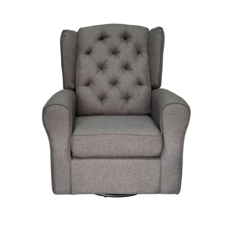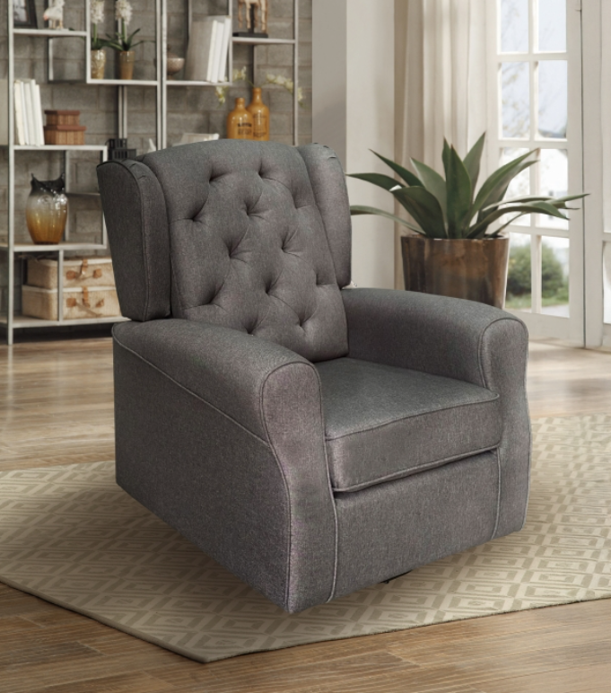 No living room is complete without a cozy armchair, and the Fiona Collection provides all that and more. Although this chair radiates timeless elegance thanks to a traditional wing-back design complete with diamond-quilted tufting on the back cushions and rounded sock arms, this seat has some excellent modern features as well. Not only does it have a glider apparatus to offer a gentle rocking motion, but it also features swiveling mechanism with the ability to turn 360-degrees, perfect for lulling you or a little one off into a satisfying snooze. Wrapped in splendid linen-like charcoal fabric upholstery, this contemporary update on a classic design makes the Fiona an ideal addition for your transitional living room.