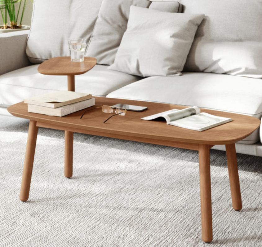 A simple, elegant mid-century-inspired design coffee table, the Umbra Swivo features a swiveling top tier, providing space for a small plant, tv remotes, drinks and more. With a real wood finish and soft curves, this coffee table adds a subtle modern touch. Measures: 47.25 x 22 x 24.25 inches ( 120 x 56 x 62 cm).